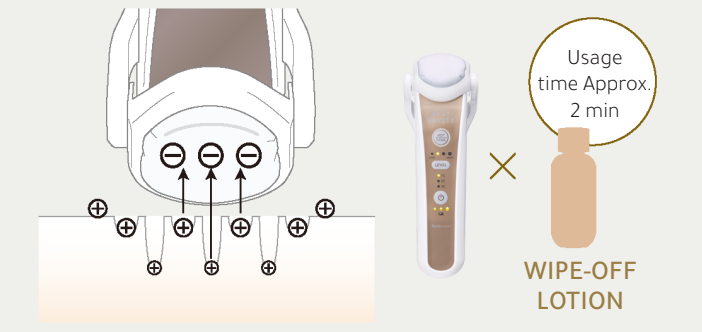 The cleansing solution removes dead skin cells, dust, and impurities from the surface of the skin, and also attracts positively charged impurities from inside the pores using the negative electrical charge of the device. This works in the same principle as a vacuum cleaner that sucks dust from the floor!